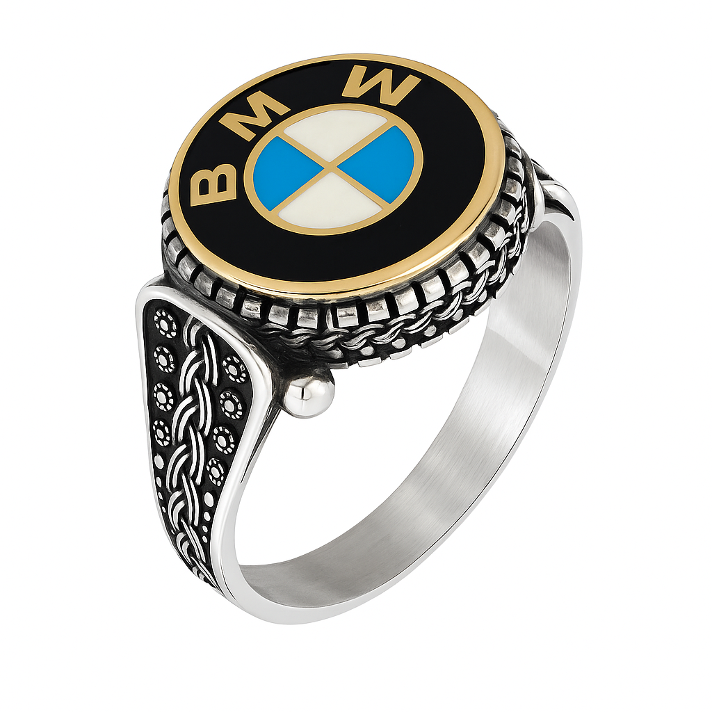 The BMW Drive Crest ring merges precision with personality, featuring the iconic BMW emblem set atop a gear-edged bezel. Crafted in sterling silver and finished with intricate side detailing, this bold design pays tribute to engineering excellence and high-performance style — a perfect choice for auto enthusiasts who appreciate craftsmanship and character.