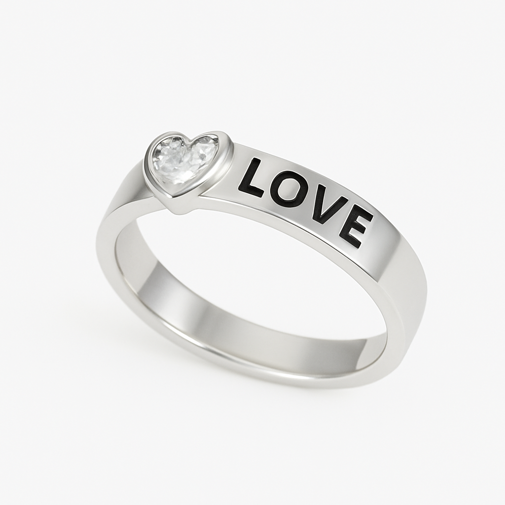 Celebrate timeless affection with the Engraved Love and Heart Band – a finely crafted sterling silver ring that captures the essence of pure devotion. Featuring a polished finish and a sparkling heart-shaped stone set above the engraved word LOVE, this elegant design speaks directly to the heart. Perfect as a promise ring, anniversary gift, or a symbol of self-love, this ring adds a touch of romance and meaning to any moment.