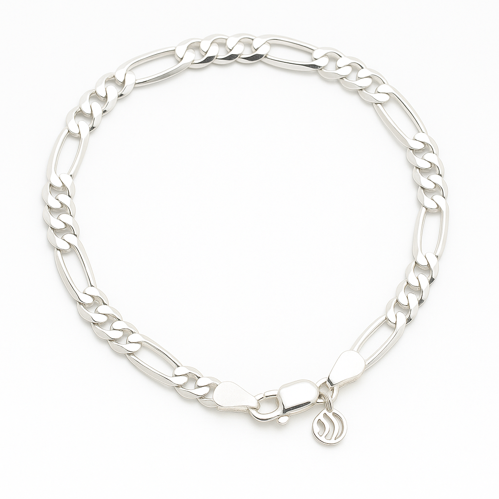 Add timeless elegance to your collection with this Sterling Silver Figaro Link Bracelet, crafted with precision and polished to a refined shine. Featuring the classic Figaro pattern — one elongated oval link followed by three shorter round links — this bracelet offers a perfect balance of boldness and sophistication. Made from high-quality 925 sterling silver, it ensures durability while maintaining a sleek feel.