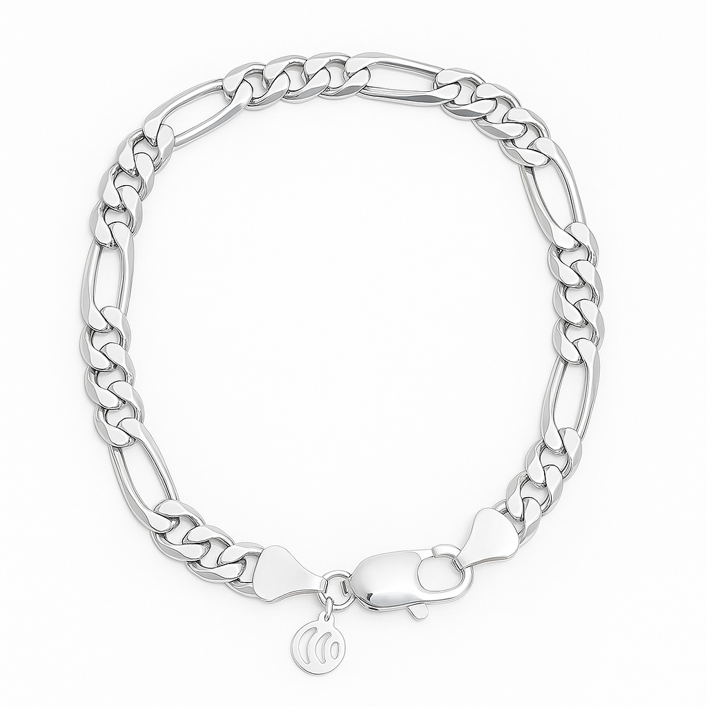 Add timeless elegance to your collection with this Sterling Silver Figaro Link Bracelet, crafted with precision and polished to a refined shine. Featuring the classic Figaro pattern — one elongated oval link followed by three shorter round links — this bracelet offers a perfect balance of boldness and sophistication. Made from high-quality 925 sterling silver, it ensures durability while maintaining a sleek feel.