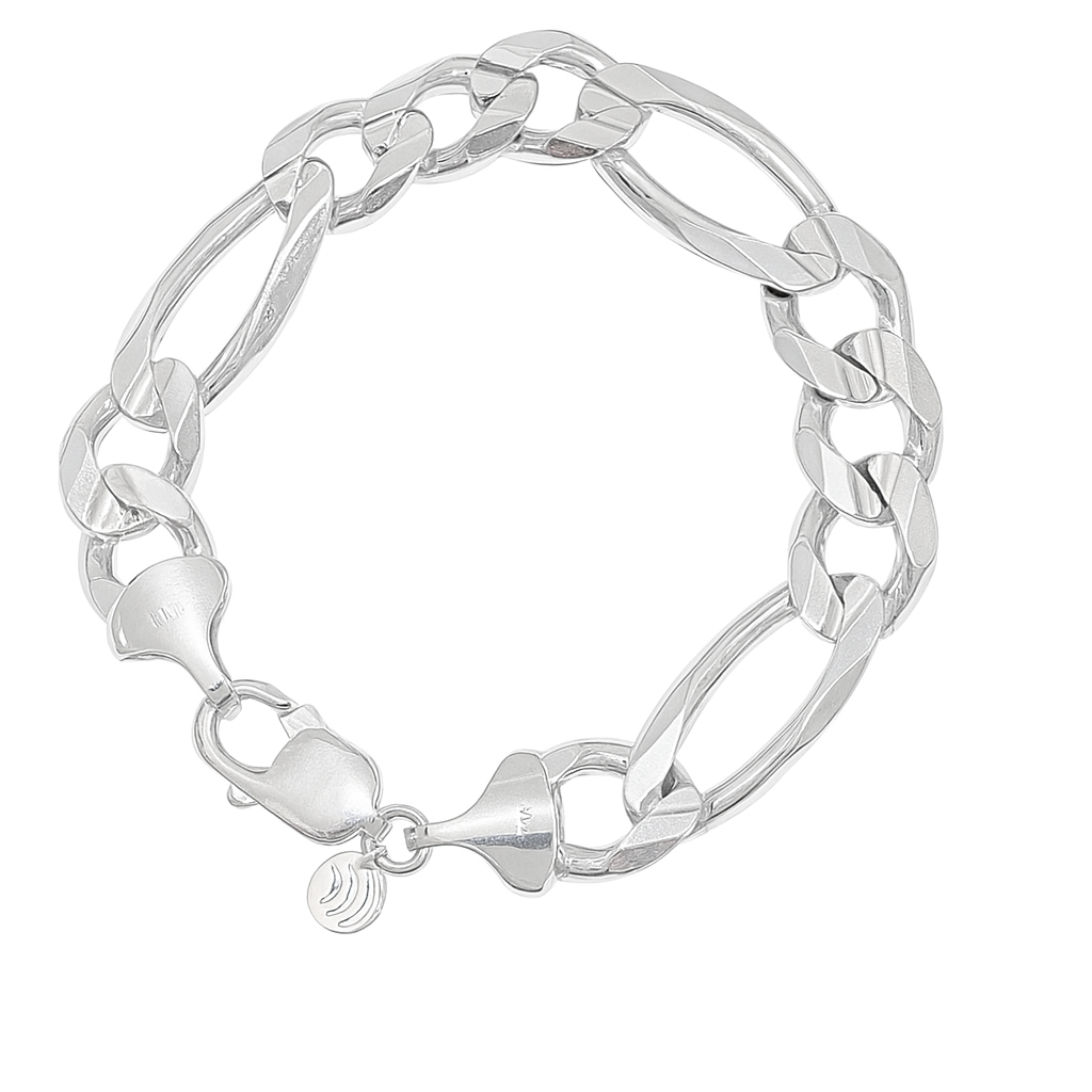 Add timeless elegance to your collection with this Sterling Silver Figaro Link Bracelet, crafted with precision and polished to a refined shine. Featuring the classic Figaro pattern — one elongated oval link followed by three shorter round links — this bracelet offers a perfect balance of boldness and sophistication. Made from high-quality 925 sterling silver, it ensures durability while maintaining a sleek feel.