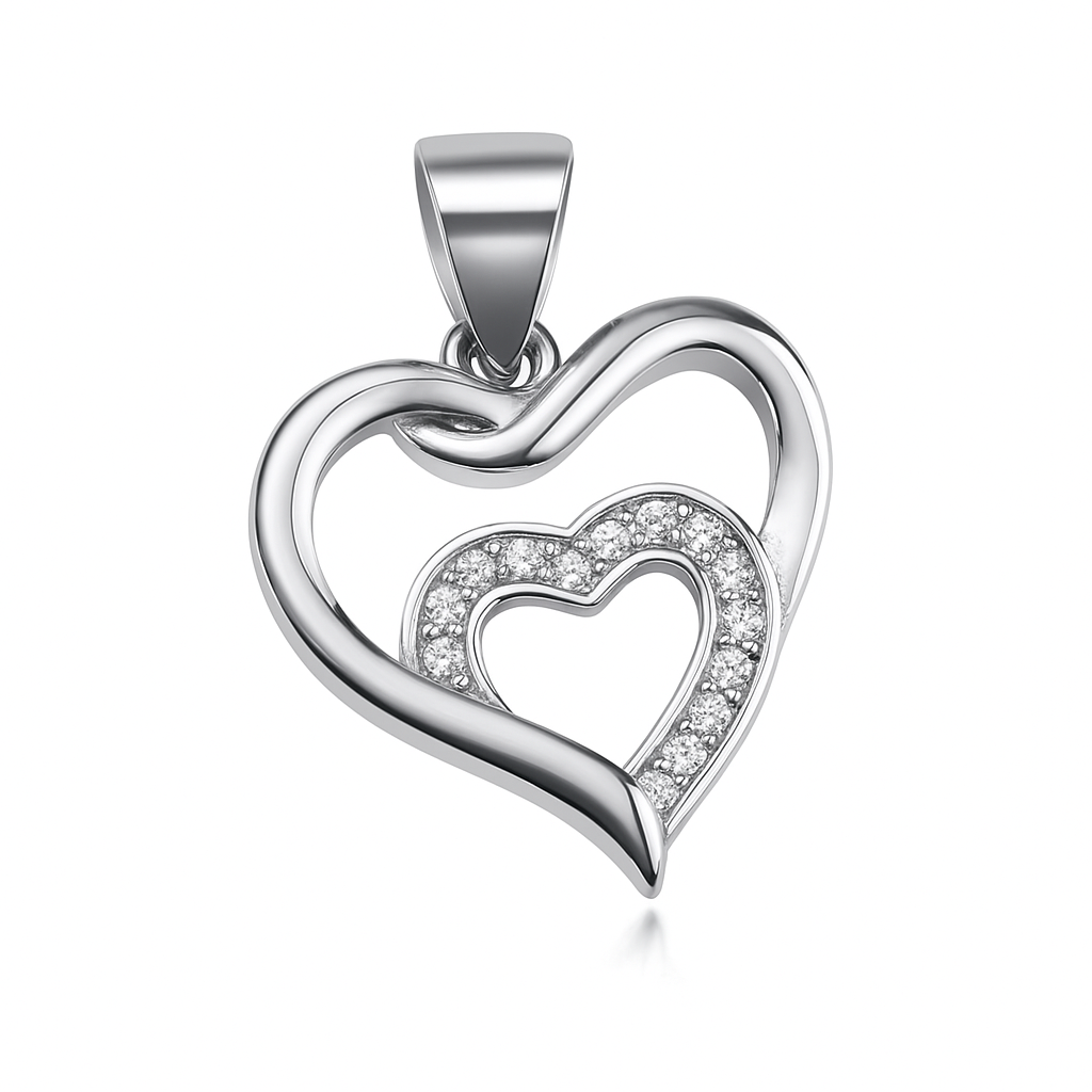 Celebrate timeless connection with the Forever Bond Pendant. Crafted in sterling silver, this elegant design features two intertwined hearts — one polished and one adorned with sparkling cubic zirconia. Symbolizing love, unity, and lasting relationships, this pendant is a perfect gift for someone special or a meaningful addition to your everyday jewelry.