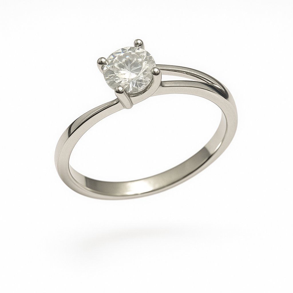 The Celestia Curve Ring is a sleek and modern sterling silver piece featuring a gracefully arched band that meets a luminous round-cut center stone. Its minimalistic yet sophisticated design gives the illusion of the stone floating effortlessly above the band—an elegant tribute to balance and simplicity.