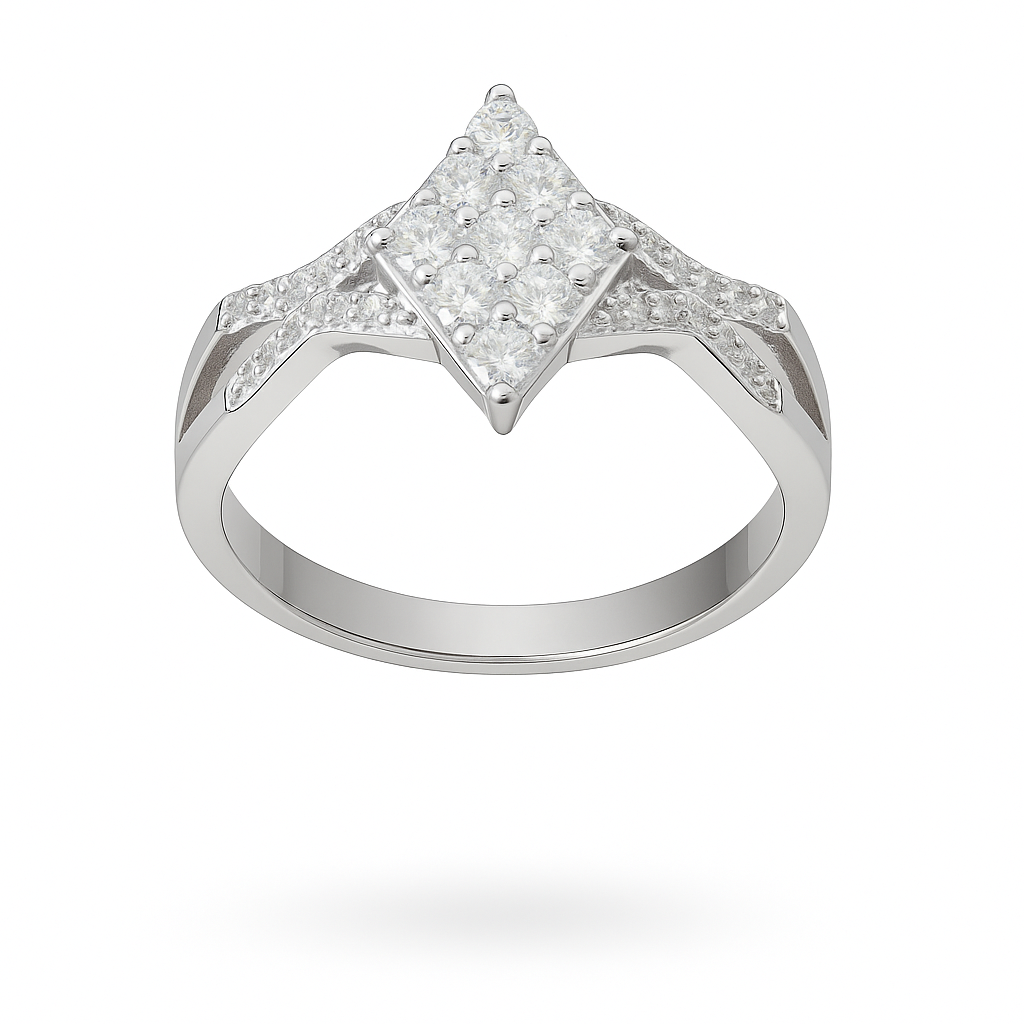The Glimmer Crest Ring features a bold kite-shaped cluster of sparkling stones set atop a silver band. With its elegant split shank design and glittering accents, this ring blends modern geometry with timeless shine. It’s a statement piece that symbolizes strength, confidence, and refined beauty—perfect for special occasions or adding brilliance to everyday style.
