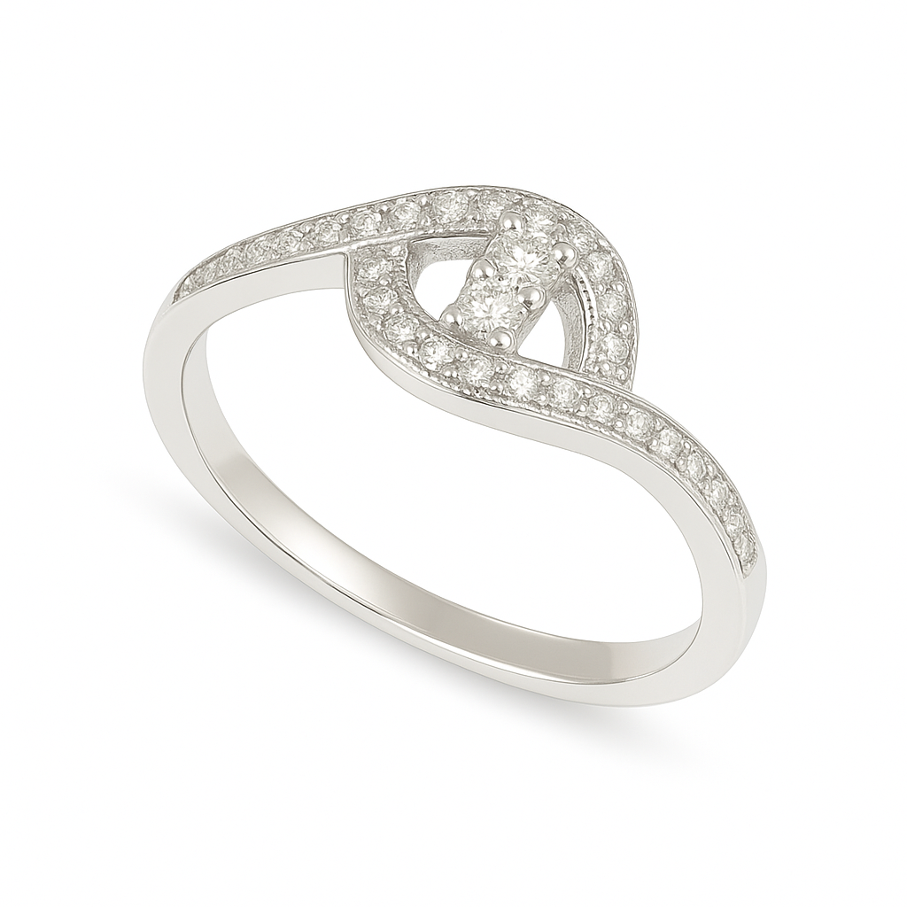 Elegantly symbolizing everlasting love and unity, the Knot Ring features a graceful crossover design encrusted with shimmering pave-set diamonds. Crafted in polished sterling silver with a subtle warm tone, this ring’s flowing silhouette and central knot evoke timeless sophistication. Perfect for marking a special bond or adding refined sparkle to everyday style.