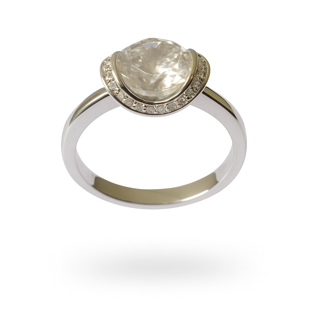 The Luna Halo ring features a radiant round-cut center stone embraced by a delicate circle of shimmering accents. Set on a polished silver band, its timeless elegance and clean design echo the soft glow of moonlight. Perfect for those who appreciate simplicity, brilliance, and grace in every detail.