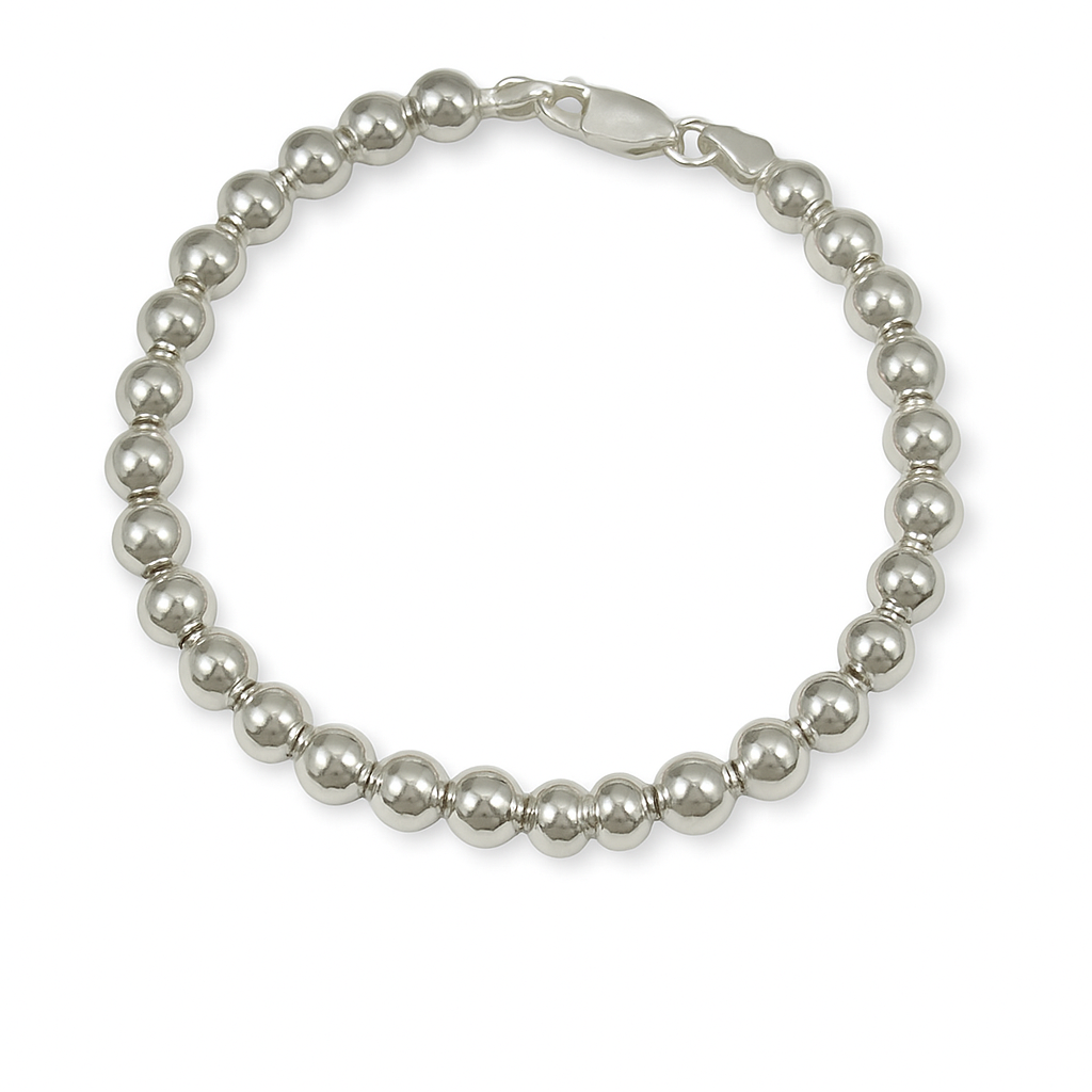 A timeless piece crafted from high-shine sterling silver, this bracelet features a continuous strand of polished spherical beads for a smooth and elegant look. Its minimalist yet bold design is perfect for everyday sophistication or layering with other pieces. Finished with a secure lobster clasp, it's a versatile staple in any jewelry collection.