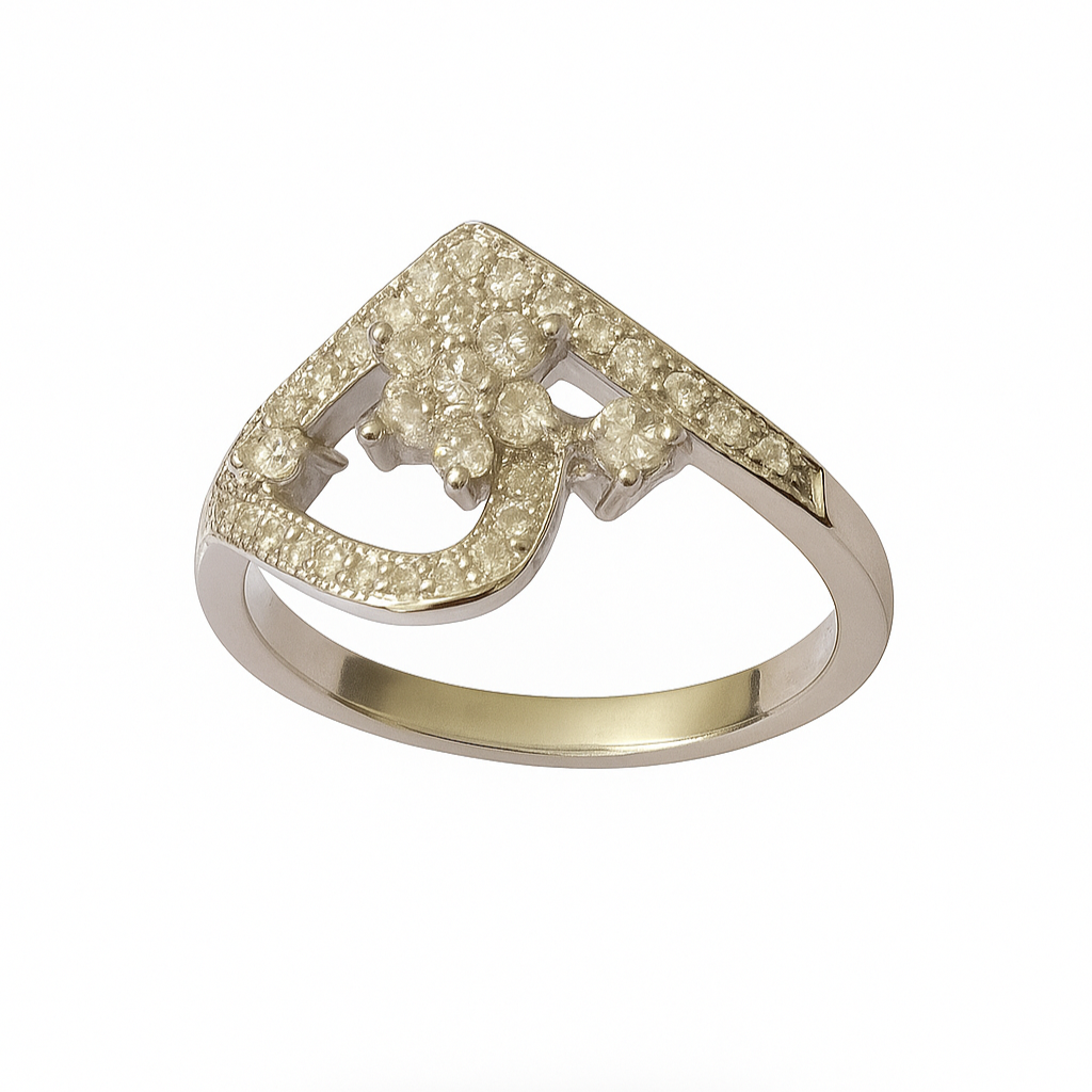 Delicate yet striking, the Petal Crest ring features a shimmering floral cluster set within a soft, shield-like open frame. Its polished silver band gracefully holds the petal-inspired centerpiece, making it a perfect blend of contemporary design and timeless elegance. A graceful statement for everyday beauty or special occasions.
