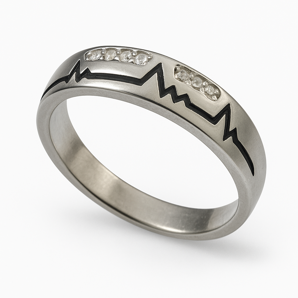 The Pulseline ring captures the rhythm of life with a sleek heartbeat engraving etched across its polished silver band. Accented with a row of sparkling stones, this design blends emotional meaning with minimalist style — a perfect symbol of love, strength, and connection.
