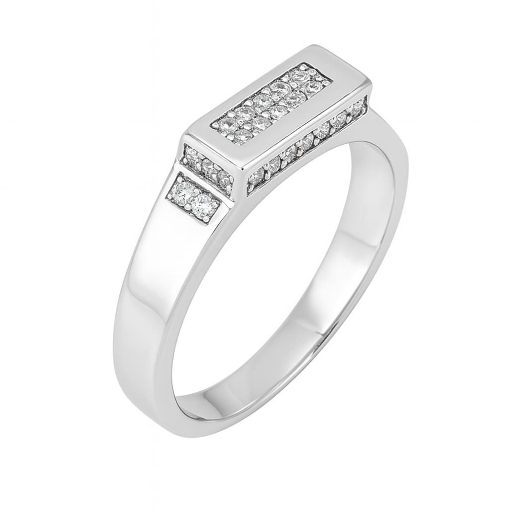 A refined fusion of modern geometry and timeless sparkle, the Regal Bar Ring features a rectangular diamond-studded top set in polished sterling silver. Sleek and minimal from every angle, this contemporary design is ideal for those who appreciate bold structure and understated brilliance. Perfect for formal or daily wear, it’s a sophisticated statement of style and strength.