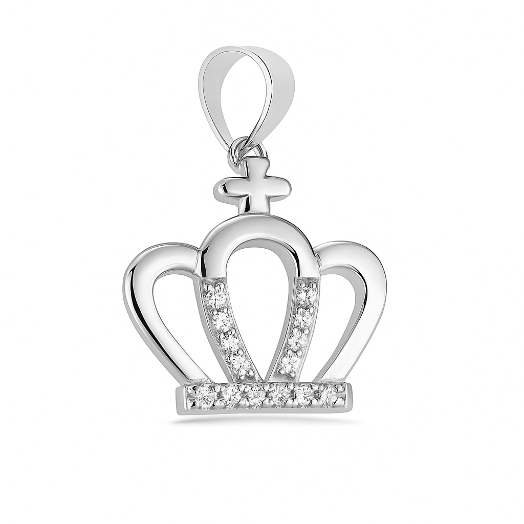 Embrace elegance with the Regal Crown Pendant, crafted in polished sterling silver and accented with brilliant cubic zirconia. This crown-shaped design symbolizes strength, confidence, and timeless charm. Perfect as a standalone statement or layered with your favorite chains, it’s a subtle yet royal touch for everyday wear or special occasions.