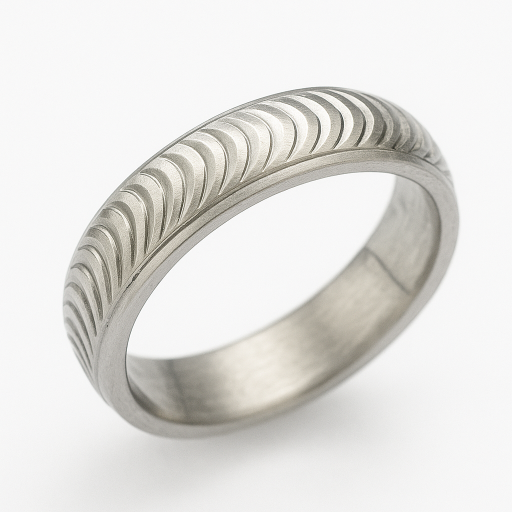 The Silver Drift ring is designed with a rhythmic, leaf-like pattern that gently flows across the polished band. Crafted in sterling silver, it’s a subtle yet striking piece that captures the grace of motion — perfect for everyday wear with a touch of nature-inspired style.