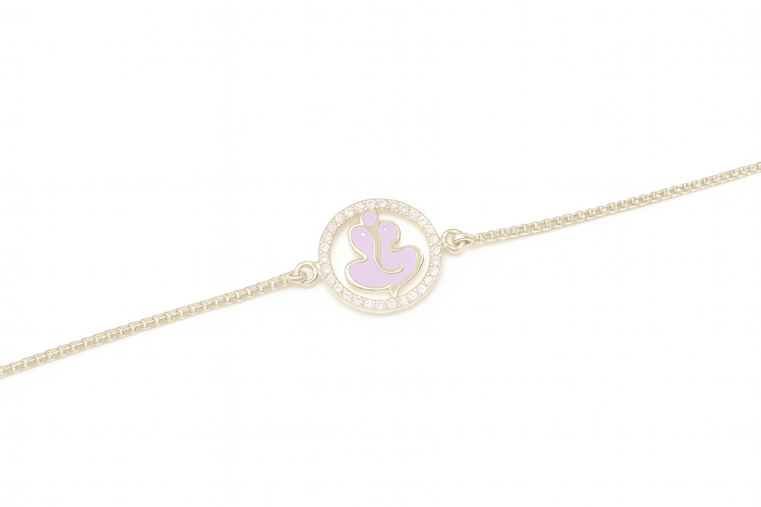 Celebrate the eternal bond of love with this elegant sterling silver Rakhi, featuring a beautifully detailed circular centerpiece adorned with a lavender enamel Lord Ganesha motif. The Ganesha emblem is surrounded by a shimmering halo of miniature clear stones, symbolizing prosperity and protection for your brother. Crafted with a fine silver chain, this rakhi blends tradition with modern design, making it a memorable keepsake long after Raksha Bandhan.