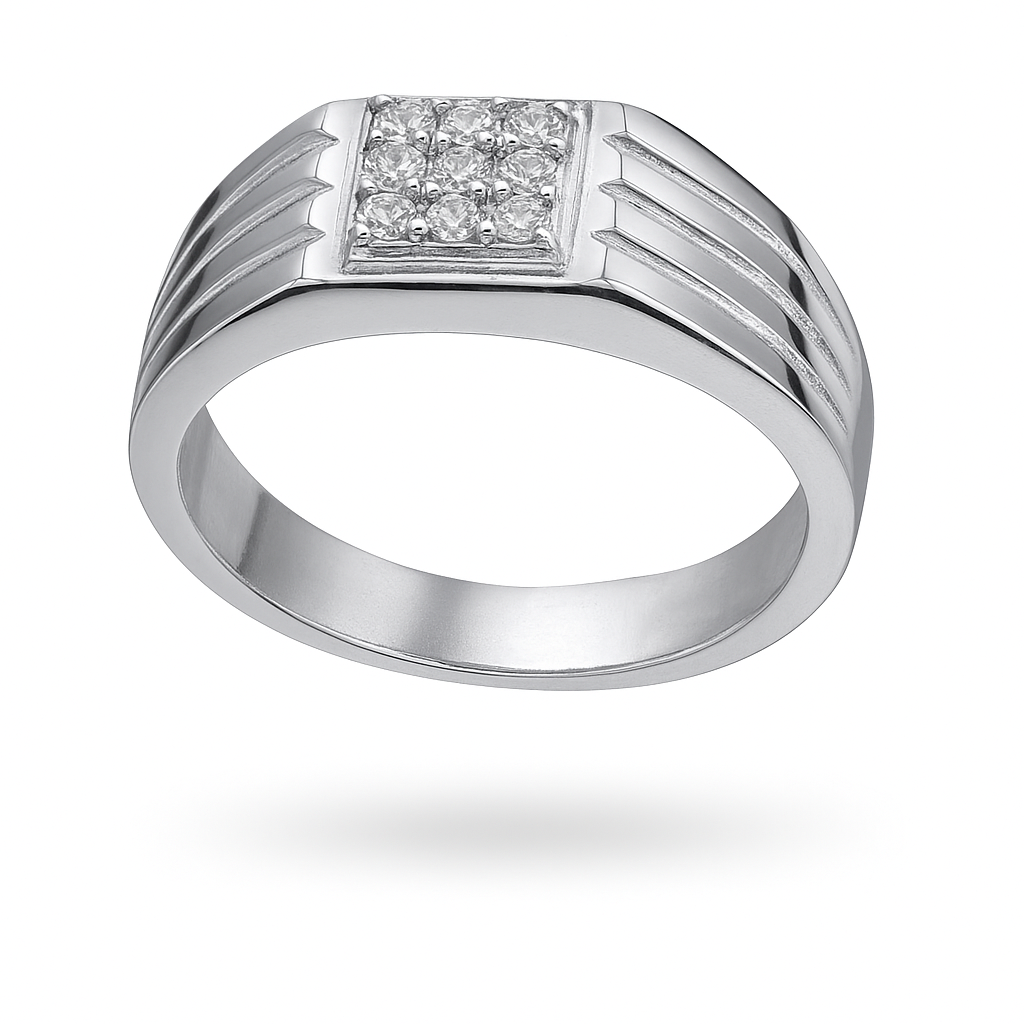 The StrikeSquare ring showcases a sharp grid of stones at its center, flanked by deep angled grooves that cut across the polished silver band. A bold fusion of structure and shine, it’s perfect for those who prefer clean edges and strong visual impact.