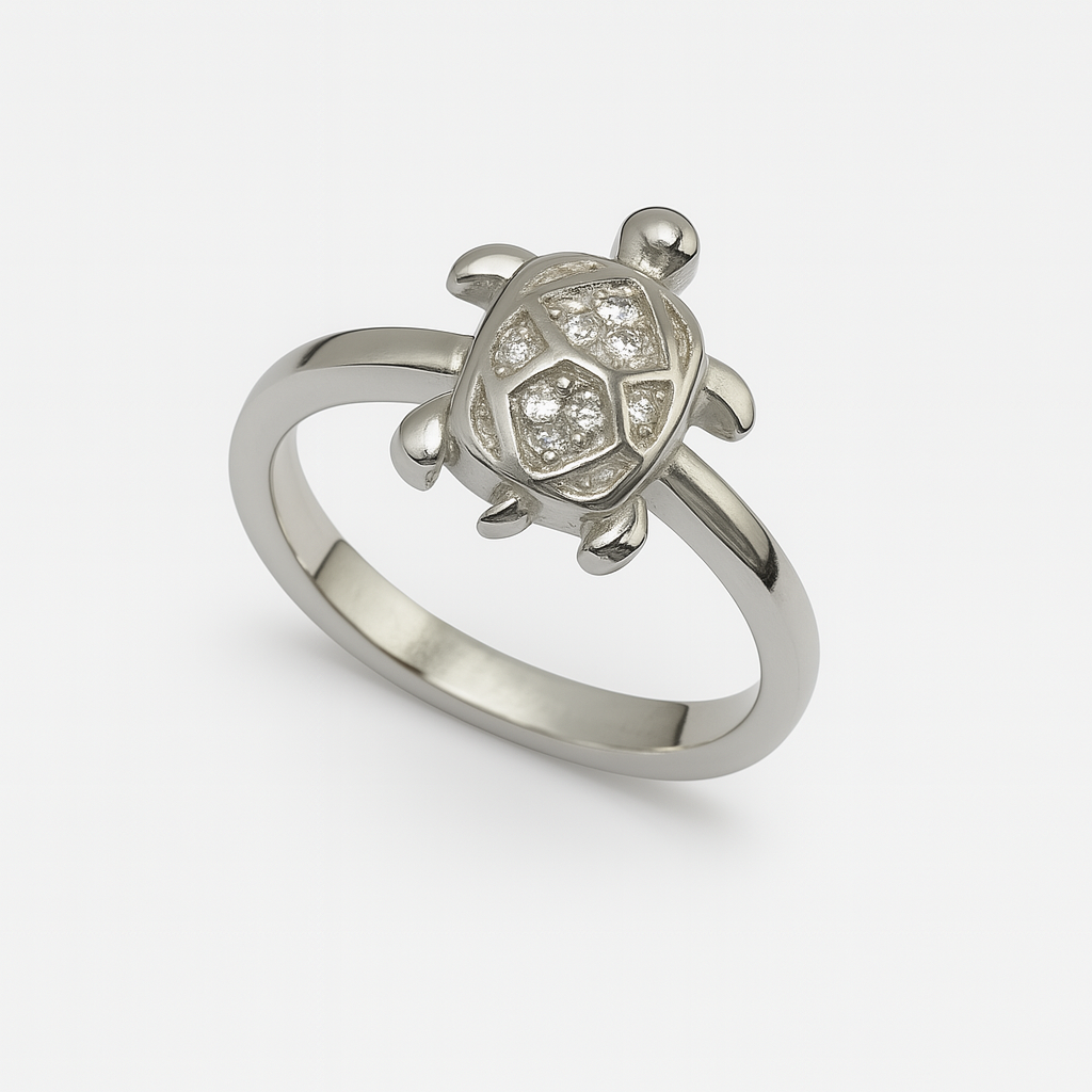 Embrace the charm of the sea with the Turtle Ring (small) Ring, featuring a beautifully crafted silver turtle adorned with sparkling stones. Symbolizing longevity, protection, and peaceful energy, this elegant design captures the spirit of nature in a minimal yet meaningful form. Perfect for daily wear or gifting someone who treasures unique marine-inspired jewelry.