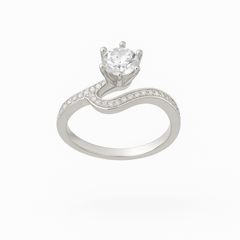 A graceful 925 silver ring featuring a dazzling crystal-style centerpiece cradled by a delicately twisted band. Elegant, timeless, and perfect for every moment.