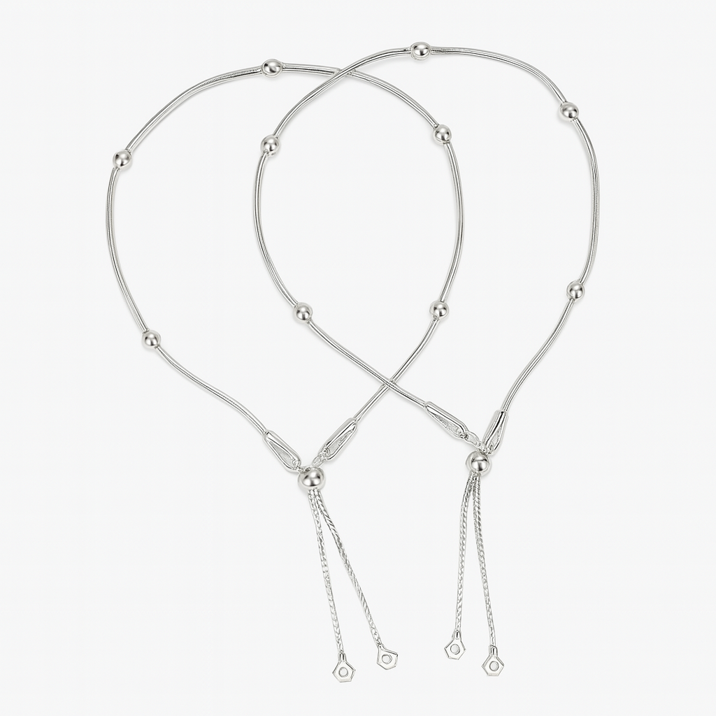 Sleek, refined, and effortlessly stylish — the Ziya Adjustable Ball Anklets are crafted from high-quality sterling silver and designed for modern minimalism. Featuring a smooth chain adorned with evenly spaced polished silver beads, each anklet ends in graceful extension tassels for a custom fit. Lightweight yet striking, these anklets offer everyday comfort with a shimmering touch of sophistication, perfect for both casual wear and elegant occasions.
